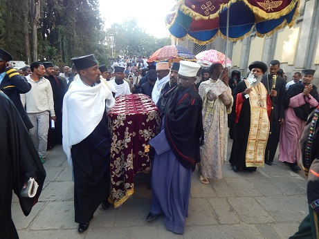 የቀብራቸው ሥነ ሥርዓትም በዚኹ ዕለት፣ ብፁዕ ወቅዱስ አቡነ ማትያስ ፓትርያርክ ርእሰ ሊቃነ ጳጳሳት ዘኢትዮጵያ ሊቀ ጳጳስ ዘአኵስም ወእጨጌ ዘመንበረ ተክለ ሃይማኖት፣ ብፁዓን ሊቃነ ጳጳሳት ባሉበትና የአድባራትና ገዳማት አስተዳዳሪዎች በተገኙበት ሥርዓተ ጸሎተ ፍትሐቱ ከተፈጸመ በኋላ በቅድስት ሥላሴ ካቴድራል ተፈጽሟል፡፡